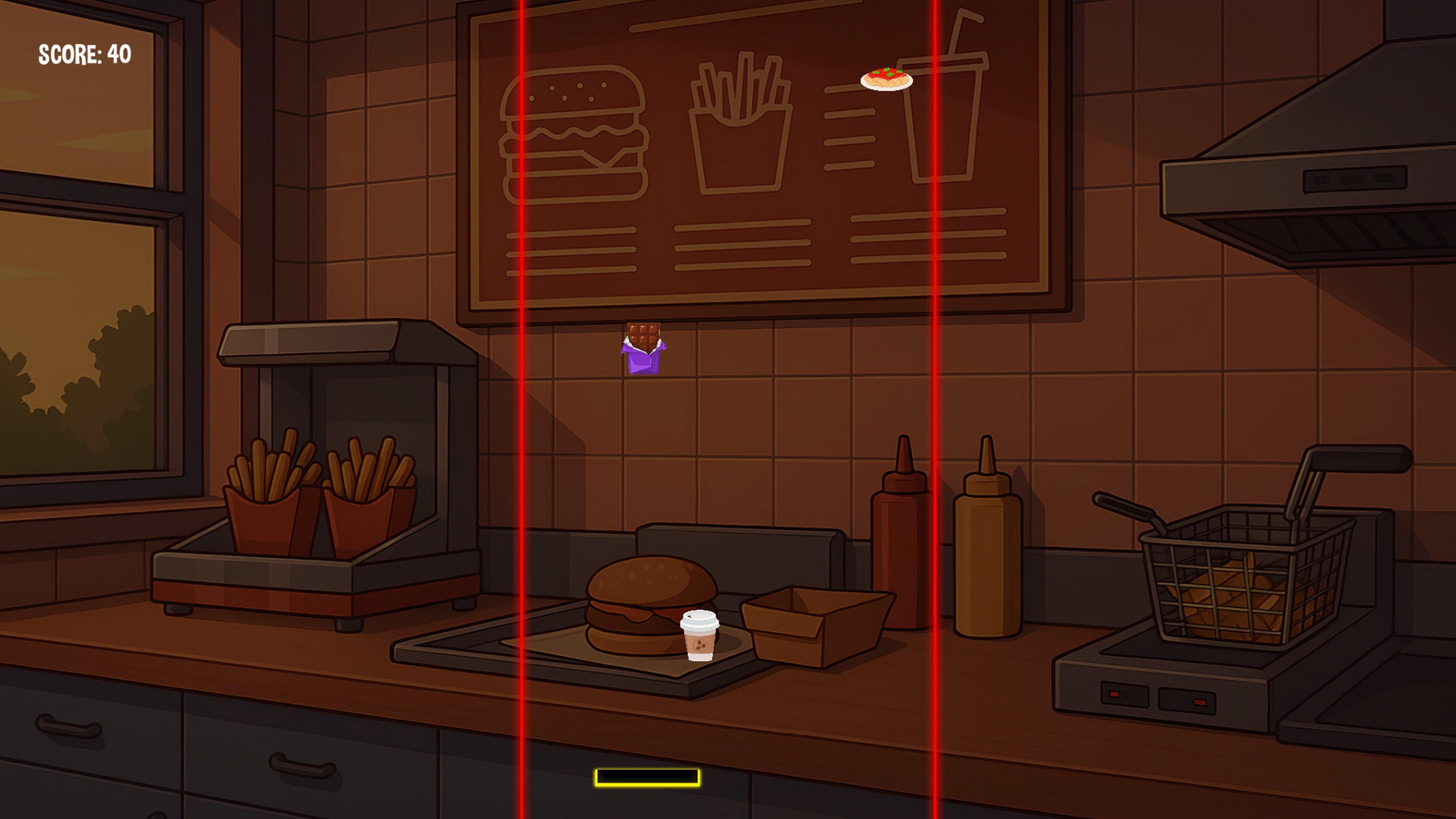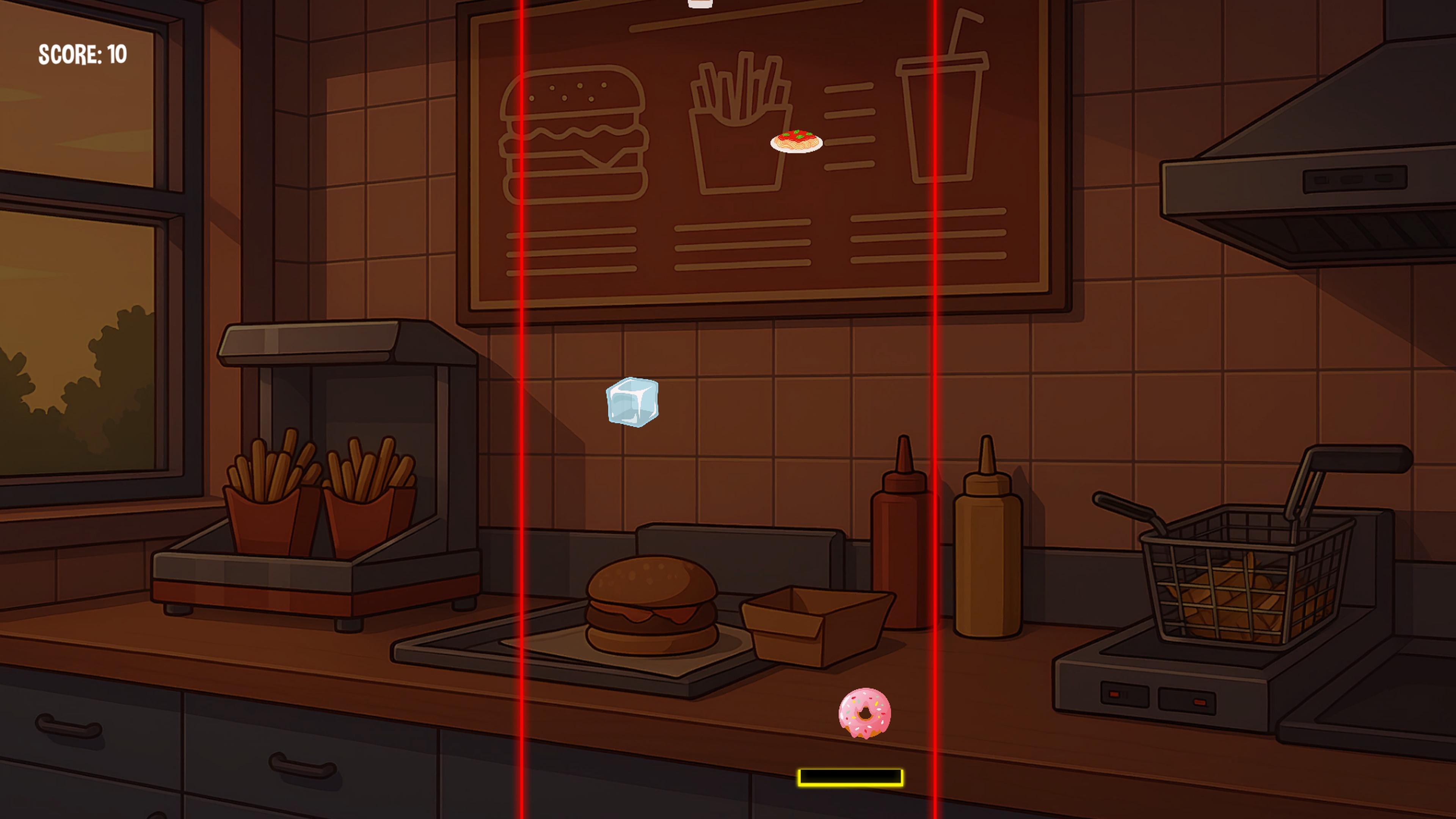 Sammle Pizza, Sushi, Donuts und mehr – aber bleib wachsam, denn das Tempo zieht immer weiter an.